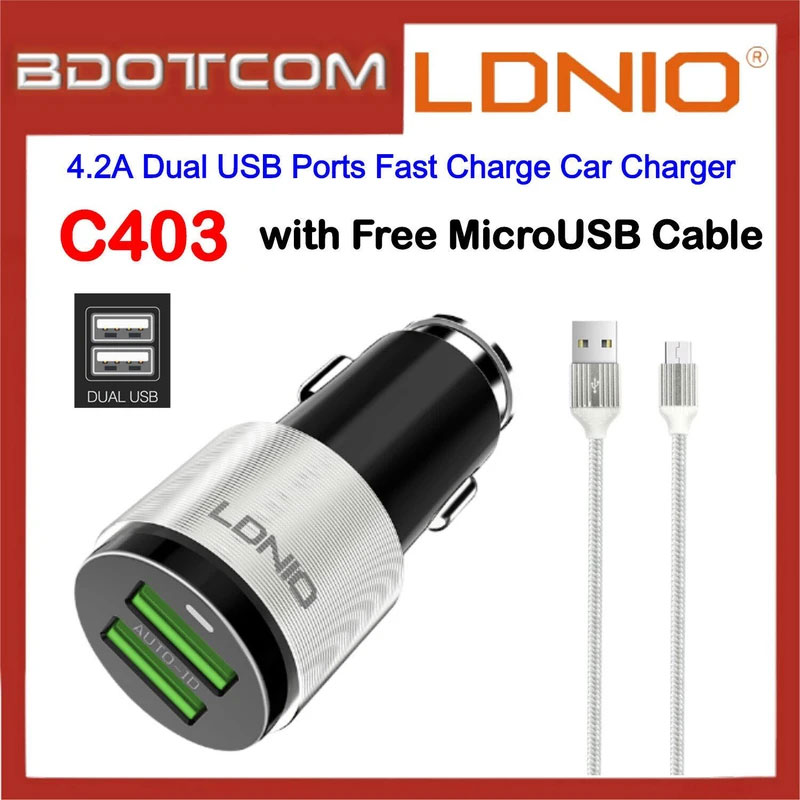 شارژر فندکی LDNIO C403 توانایی شارژ گوشی و تبلت را دارا بوده و یک کابل شارژنیز همراه آن است. این شارژر فندکی پر قدرت با داشتن دو خروجی USB مجزا میتواند دو دستگاه را بهطور همزمان شارژ کند. به لطف شدت جریان خروجی 5 ولت 4.2 آمپری، امکان شارژ تمامی دستگاه ها هم وجود دارد.LDNIO C403 با طراحی شیک،ابعاد مناسب قیمت پایین و بازده خوبی که دارد بهخوبی میتواند نیاز به همراه داشتن دو شارژ را برطرف کند و برای اندروید و ios کاربرد دارد.بدنه این شارژر فندکی با استفاده از جدیدترین تکنولوژی های روز ساخته شده و بدنه ای با کیفیت ساخت بالا،مقاوم در برابر آتش است.قابلیت و تکنولوژی جدیدی که به تازگی به برخی محصولات کمپانی LDNIO اضافه شده Auto-ID می باشد که به رغم وجود این خصیصه شارژ این توانایی را یافته که شدت جریان خروجی را بسته به دستگاه متصل به آن به خوبی تنظیم و کنترل کند و به نوعی سبب افزایش عمر باتری دستگاه متصل نیز شود.پنل رابط پورت های خروجی این شارژر از نوع USB 3.0 بوده که این نیز خود سبب افزایش سرعت شارژ می شود.همراه با شارژر فندکی یک عدد کابل میکرو یو اس بی از نوع تخت ;فلت; نیز در بسته قرار دارد.این شارژر فندکی 4.2 آمپری پر قدرت با چندین دستگاه تست شده و سرعت شارژ بالایی را ارائه می دهد.